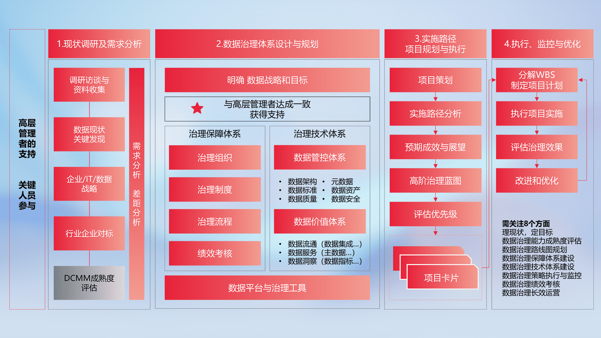 制定并执行统一的数据标准,,规范数据定义和格式,,,,消除冗余和不一致性,,,实现跨部门和跨系统的数据一致性,,,,为企业提供标准化的数据基础。。。。